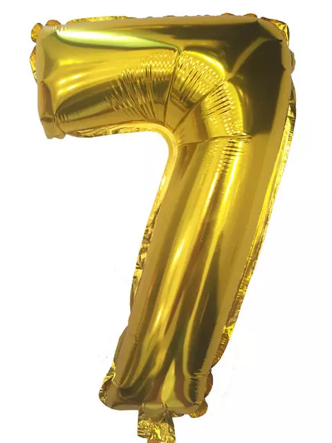 Фольгована кулька у вигляді цифри "7" з клапаном Колір: золото Розмір: 35 см Надувати можна за допомогою компресору або ручного насосу Виробник: Китай
