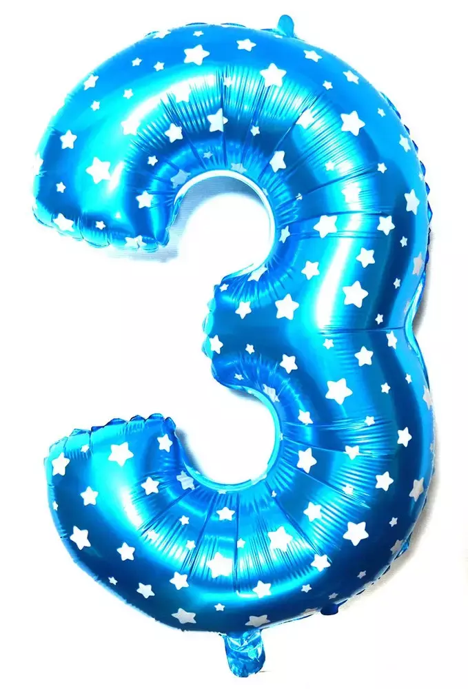 Фольгована цифра "3" блакитна, висота 65 см