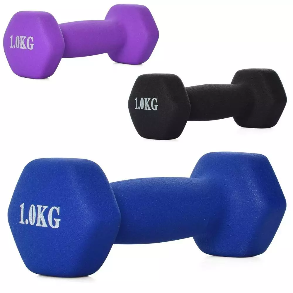 Гантель MS 0109-1 неопрен, 1кг, 3 кольори, кул., 14,5-6-6 см.
