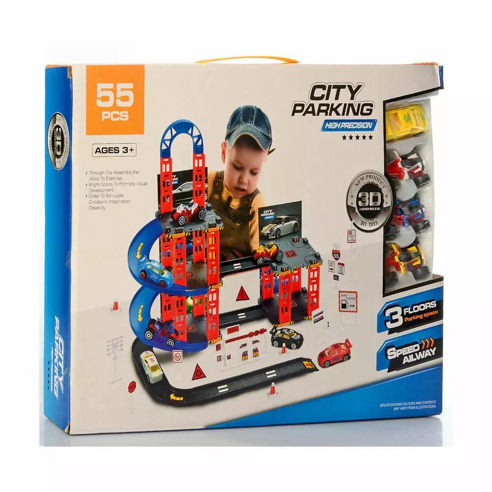 Гараж 0908-12A 3 поверхи, транспорт 4 шт., дорожні знаки, 55 дет., кор., 43-31-6 см.