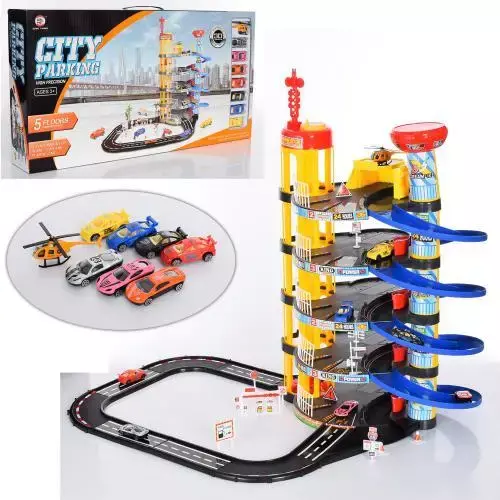 Гараж 0908-55B 5 поверхів, транспорт 8шт.(4-мет.), дорож.знаки, рухомі.дет., кор., 73-39-11,5см.