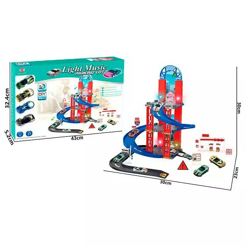 Гараж 0908-71A машинка 4 шт., муз., світло, бат., кор., 43-32,4-5 см.