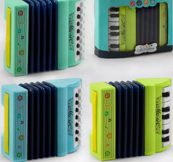 Дитяча музична іграшка 2111 A/B від Music із серії “Accordion” точно імітує знаменитий музичний інструмент акордеон. З одного боку, інструмент має ручну гармоніку з клавіатурою мелодії фортепіано - 8 активних клавіш. З іншого боку, зручна ручка для фіксації руки під час гри на інструменті. Клавіші працюють у трьох режимах, які перемикаються останньою кнопкою: - Ноти; - мелодії; - Звуки. Іграшка працює від 2-х батарейок типу «АА» – не входять до комплекту.