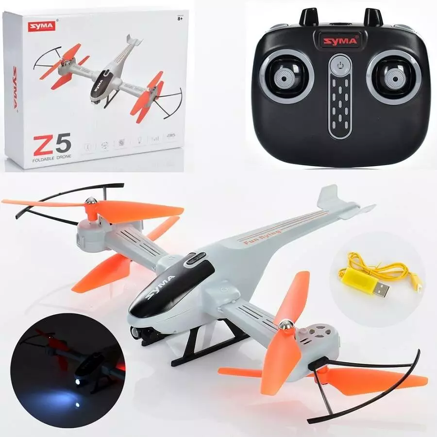 Гелікоптер Z5 радіокер.2.4G, акум., складний, USB, запасн.лопасті, світло, кор., 29-23,5-8см.