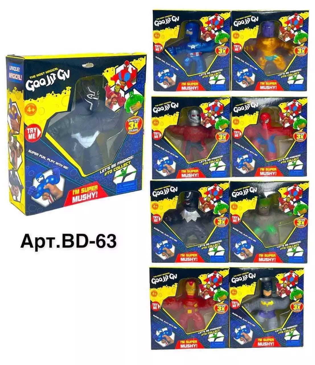 Тягучки-антистреси представлені у вигляді супергероїв із кульками орбізу всередині. Така іграшка сподобається як хлопчакам, так і дівчаткам. Іграшку можна стискати, розтягувати, тягнути і навіть зав'язувати у вузол. Еластичний матеріал іграшки може розтягнутися в кілька разів більше за своє первісне обличчя. Ігри з тягучкою сприяють відмінному настрою, а також розвивають моторику рук та пальців та діють заспокійливо на нервову систему. Увага! Перед використанням іграшки залиште її на 30 хвилин для того, щоб вона стала кімнатною температурою, тільки після цього її можна розтягувати. особливості: - фігурку можна розтягнути в 5 разів більше за власний розмір, а потім вона легко відновлює свій первісний вигляд; - іграшку можна зминати, скручувати, розтягувати безліч разів; - іграшка суперм'яка та еластична.