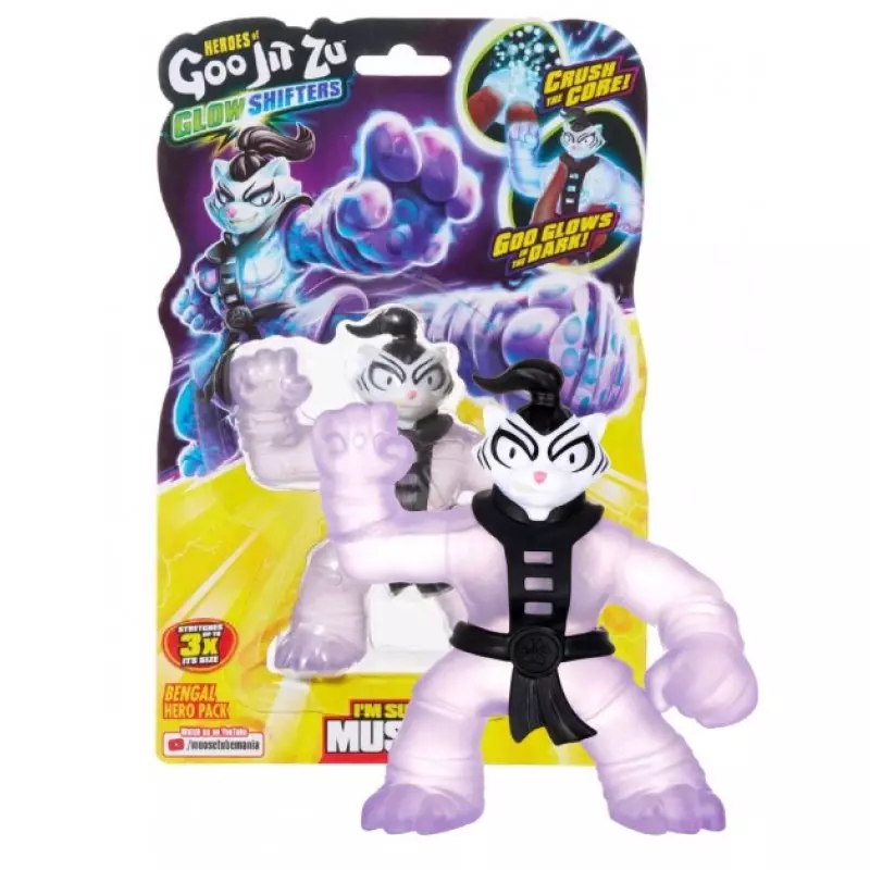 Приготуйтеся до потужних дій новими героями, що світяться у темряві! Герої Goo Jit Zu Glow Shifters тут! Улюблені всіма супер еластичні, герої повернулися та готові до активації! Розбийте ядро Goo Jit Zu, щоб активувати його сяюче «Goo-formation» і його внутрішню силу!