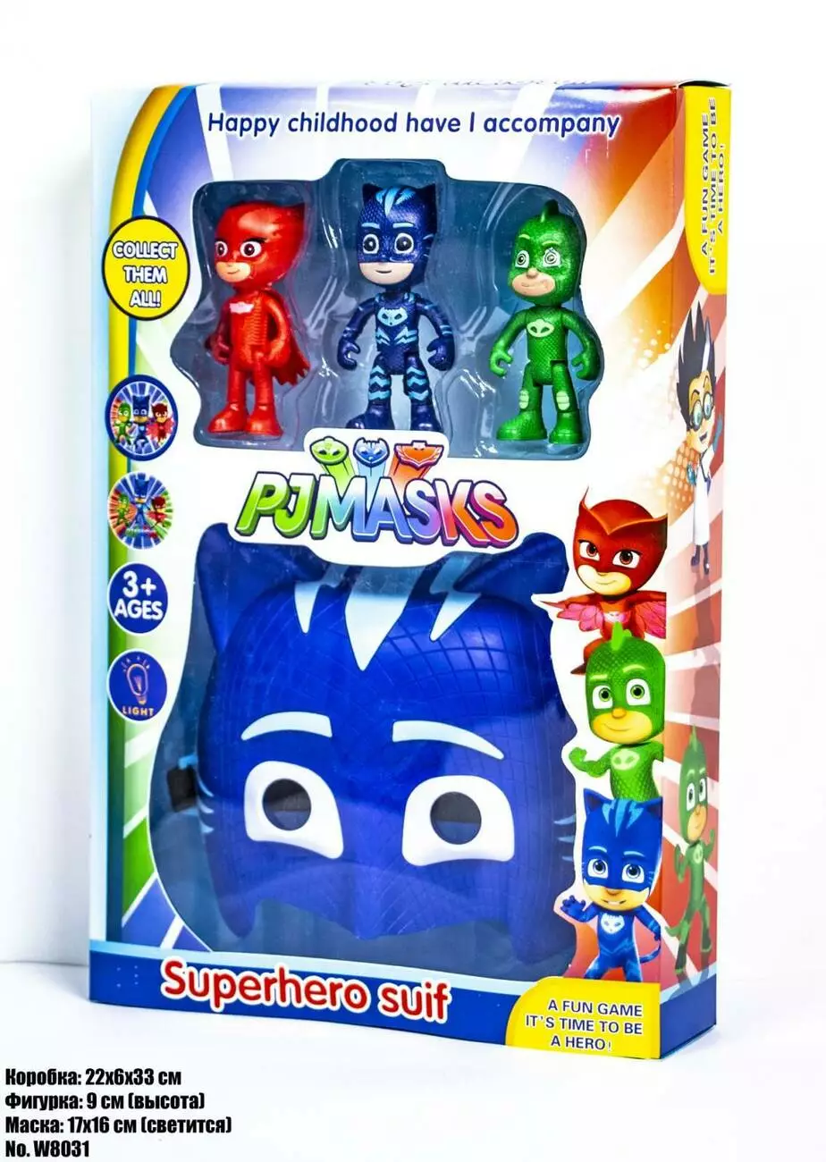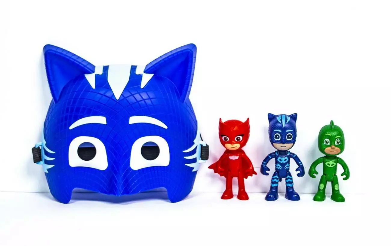 У кожного супергероя повинен бути свій унікальний геройський костюм. Але звідки дістати спецодяг, коли тобі так мало років? Адже трьом головним героям - всього по 6 років. Не у батьків же просити ... Юні персонажі мультсеріалу «PJ Masks», заснованого на серії коміксів французького автора Ромуальдо Раціоппо, знайшли свій вихід із ситуації. Головні герої - три малюка - Амайя, Коннор і Грег. Вдень герої - звичайні діти. Але, коли настає ніч і приходить пора лягати спати, вони перетворюються. Одягнувши піжами і активувавши свої звірині амулети, вони перетворюються в супергероїв, яких нічні мешканці знають як Гекко, Кетбой, Оулетт (Gekko, Catboy, Owlette, імена утворені від тварин-тотемів). Їх тотемами є, відповідно, ящірка, кіт і сова. Наприклад, Гекко вміє бігати по стінах і стелі, Оулет, символом якої є сова, відмінно бачить в темряві і безшумно літати, а Кетбой стає спритним і швидким як кіт. І ось вже герої в піжамах налаштовані на великі пригоди, розгадку таємниць, і, звичайно, виконання уроків (як без них?). А ще - кожної ночі вони повинні рятувати день! Вранці ж супергерої перетворюються в звичайних діток, так як з настанням сонця їх надздібності зникають. Герої мультиплікаційного серіалу "Герої в масках" стануть оригінальним подарунком для вашого малюка. За допомогою іграшок з серіалу "Герої в масках", ваша дитина зможе відтворити улюблені моменти мультфільму, розвинути уяву і пам'ять.