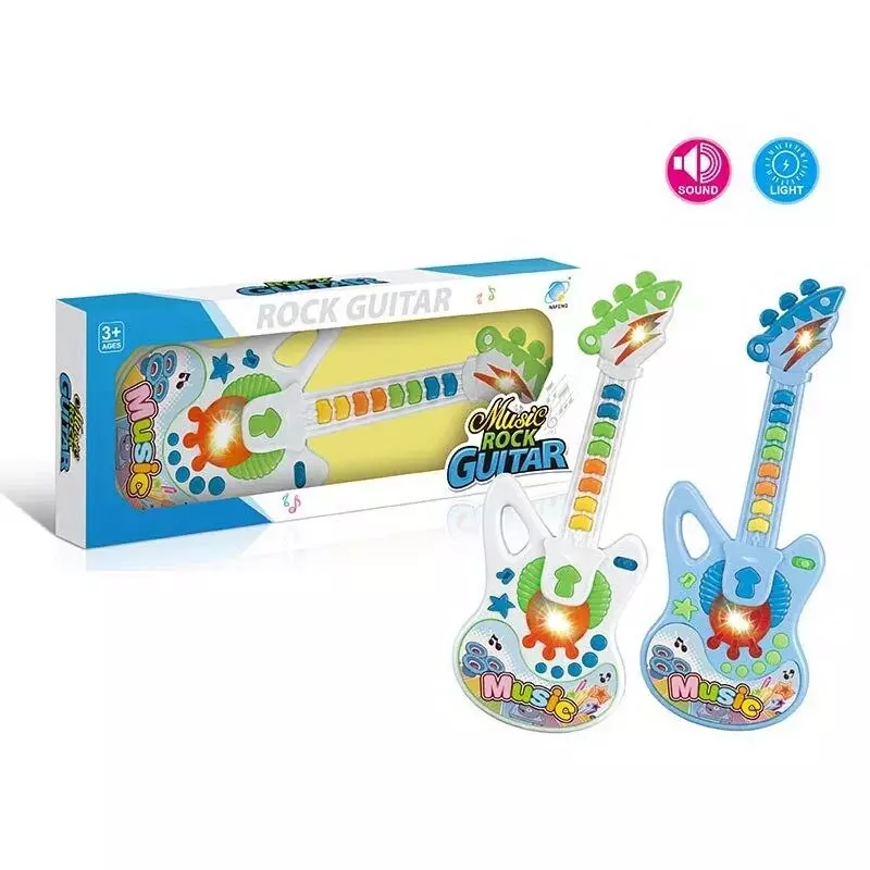 Музичні іграшки - одні з найбажаніших серед малечі. "Rock Guitar" має ряд цікавих функцій, які стануть до вподоби юним талантам. Гітара представлена у стильному дизайні та має ряд функціональних кнопок, які вже чекають, коли маленькі дитячі пальчики почнуть створювати нові музичні шедеври. Особливості: - музична іграшка працює від 3-х батарейок типу “АА” (не додаються); - працює у двох режимах: відтворення мелодій та відтворення нот; - на корпусі іграшки розташована кнопка перемикання режимів; - на грифі гітари розташовані 8 кнопок, кожна з яких відтворює ритмічну мелодію або одну з нот; - під час програвання мелодій, іграшка підсвічується яскравим світлом; - гітара має оригінальний дизайн та прикрашена яскравими кольоровими наліпками; - за допомогою яскравого шнурка гітару можна повісити на шию.