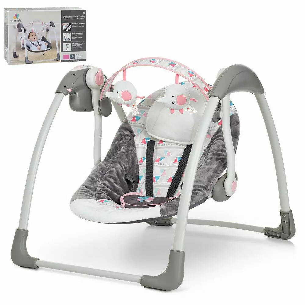 Гойдалка 6504 таймер,5швид.,дуга з підвіс.,рем.безп.,2полож.люльки,муз.,від мережі/бат.,сіро-рожевий