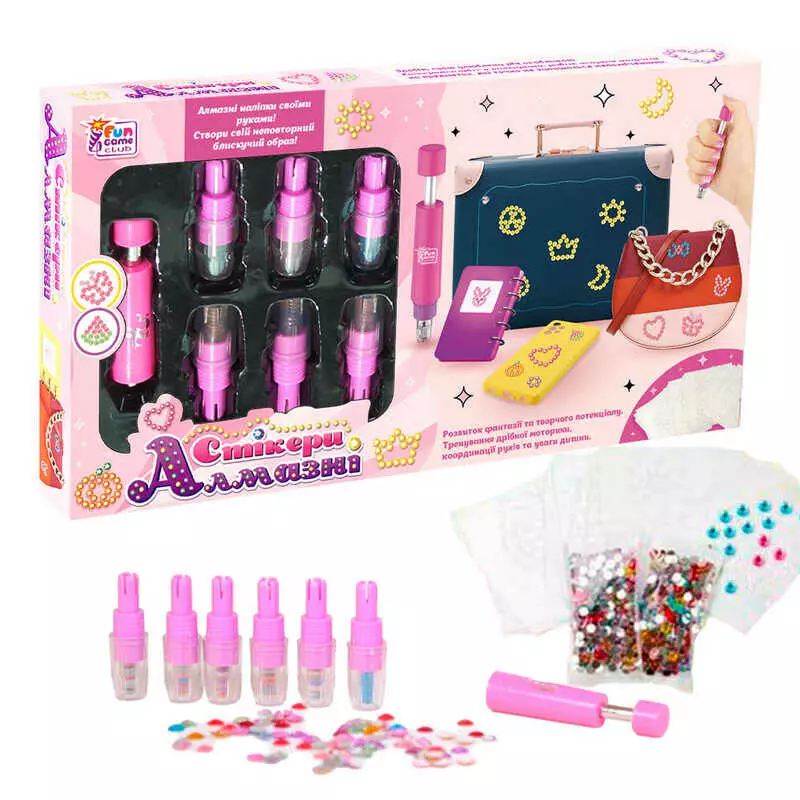 гр Алмазні стікери 87548 (18) ""4FUN Game Club"", ручка зі змінними блоками, стрази, шаблони, у коробці