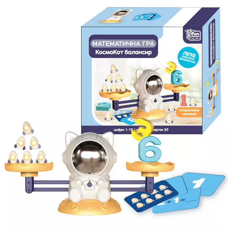 гр Балансир “КосмоКот” 79208 (12) ""4FUN Game Club"", 3 рівні гри, 30 двосторонніх карток, цифри від 1 до 10, в коробці
