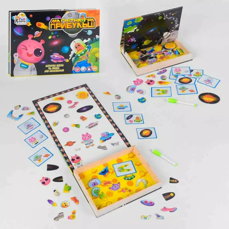 гр Дерев'яна гра 18094 ""Космічні прибульці"" (12) ""4FUN Game Club Wood"", 68 елементів, пазли, маркер, магнітна дошка, українською мовою, в коробці