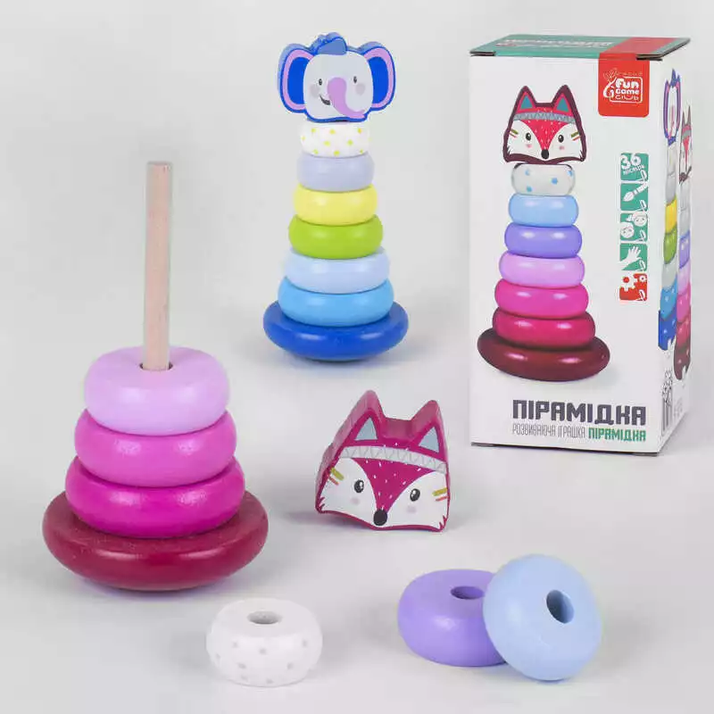 гр Дерев'яна пірамідка 90735 (50) ""4FUN Game Club Wood"" 2 види, в коробці