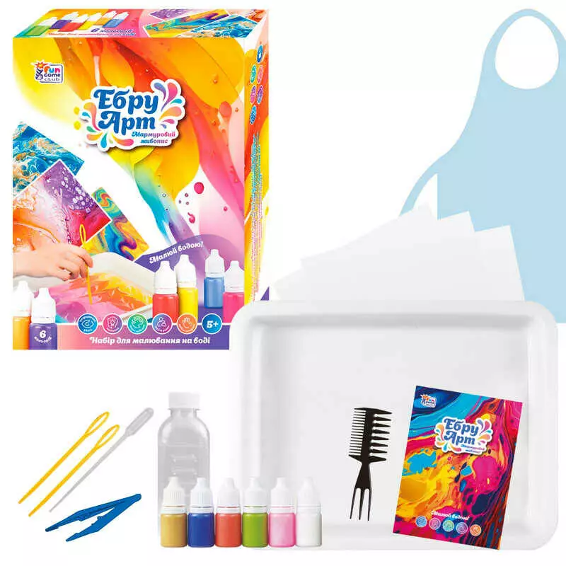 гр Ебру арт 62742 (12) ""4FUN Game Club"", 6 пігментів, концентрат 50 мл, акварельний папір, інструменти, у коробці
