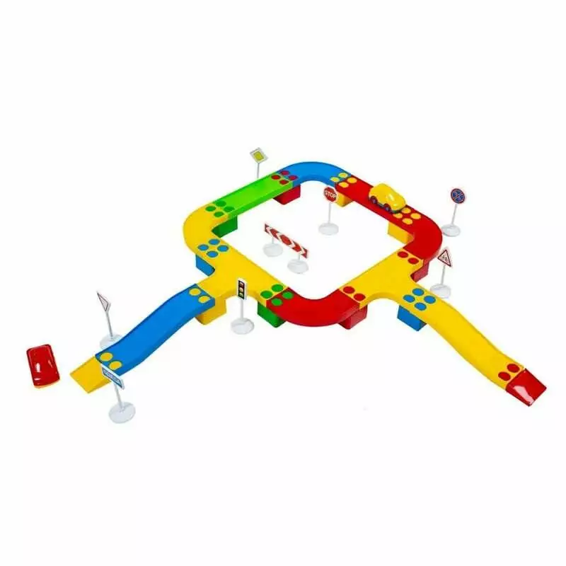 гр Ігровий конструктор ""Кольорова дорога №2"" 114/23 (12) ""BAMSIC"" 33 деталі, 2 машинки, дорожні знаки, в тубусі