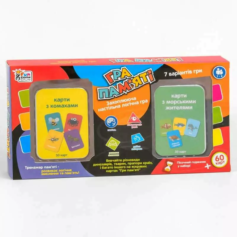 гр Карткова гра UKВ-В 0046-3 ""Гра пам`яті - З морьськімі жителями та комах"" (24) ""4FUN Game Club"", пісочний годинник, українською мовою, в коробці
