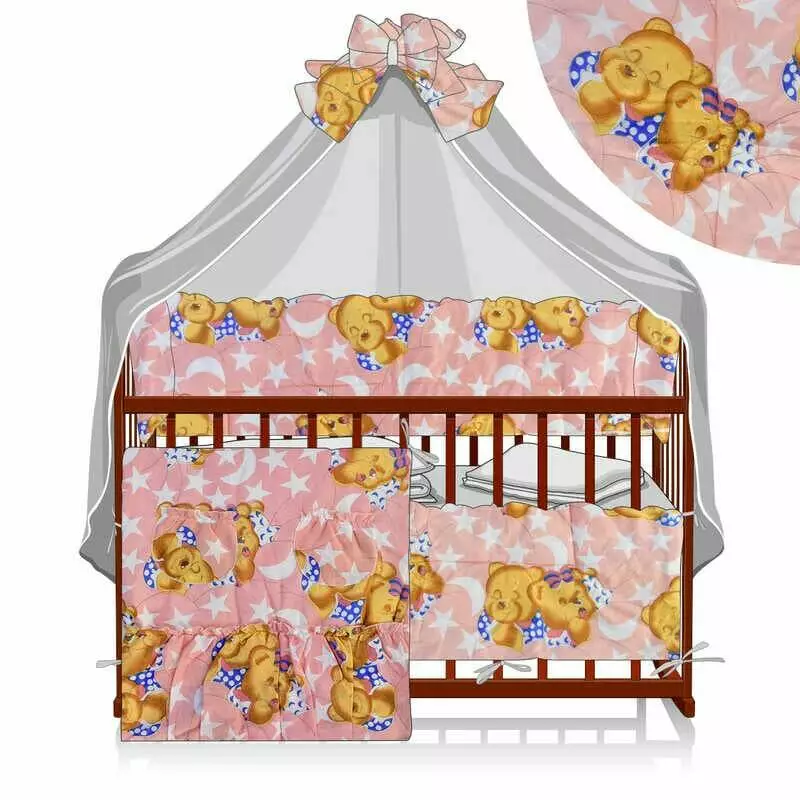 гр Комплект в ліжечко 6002512 ""Малютка"" полікоттон, Сплячий ведмедик, рожевий 6 елементів (1) ""Homefort""