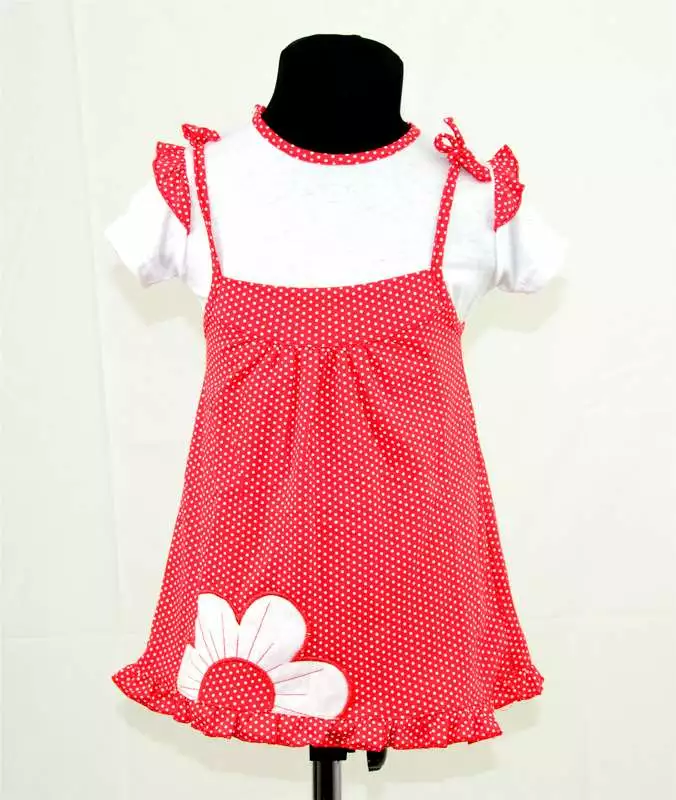 гр КП-204 ""1"" /р.80/ / червоний / Комплект для дівчинки: сарафан на зав'язках, футболка