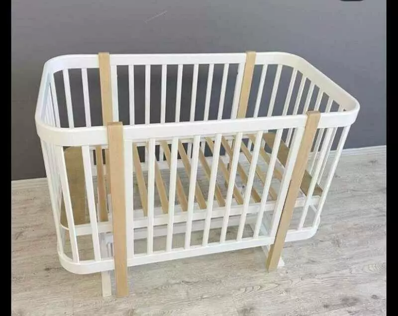 гр Ліжечко дитяче ""МІЯ"" (1) бук, шарнір-підшипник, опускна боковина (білий+натуральна стійка)