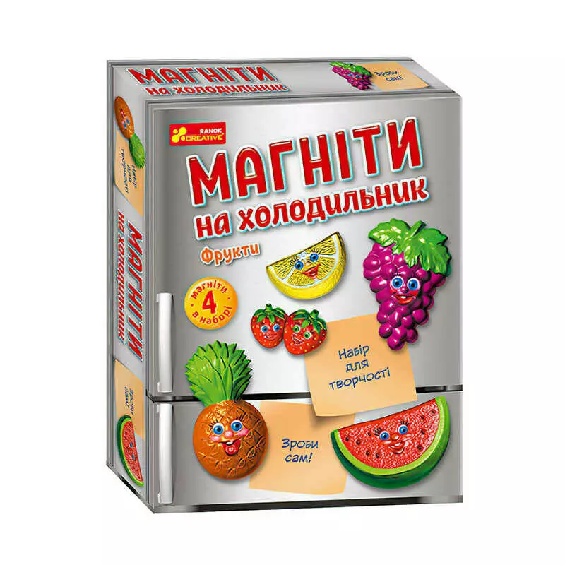 гр Магніти на холодильник. Фрукти ЧУДИК 10100631У (26) ""Ранок"", 4 магніти, гіпс, в коробці