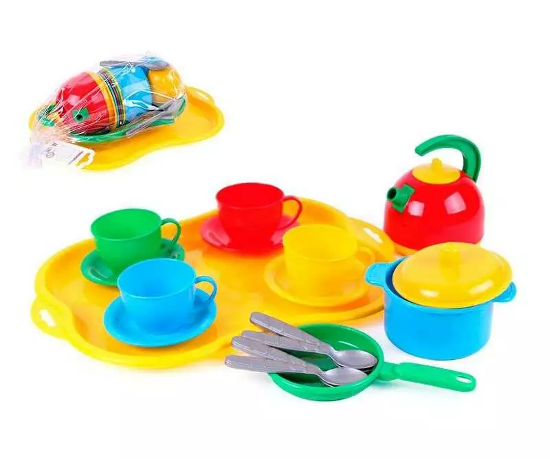 гр Набір посуду ""Маринка 7"" 1400 (16) ""Technok Toys"", каструля, пательня, кришка, чайник, 4 чашки з блюдцями, 4 ложки, таця, 32см, в пакеті
