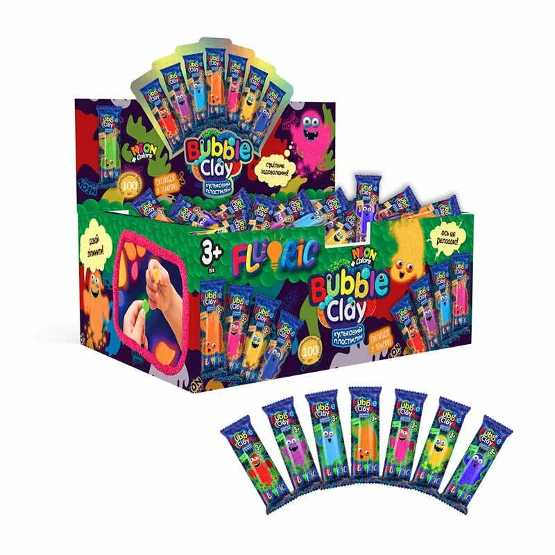гр Кульковий пластилін ""BUBBLE CLAY ""FLUORIC"" BBC-F-01-01U (1) ЦІНА ЗА 100 ШТУК В БЛОЦІ, в брикетах ""Danko Toys""
