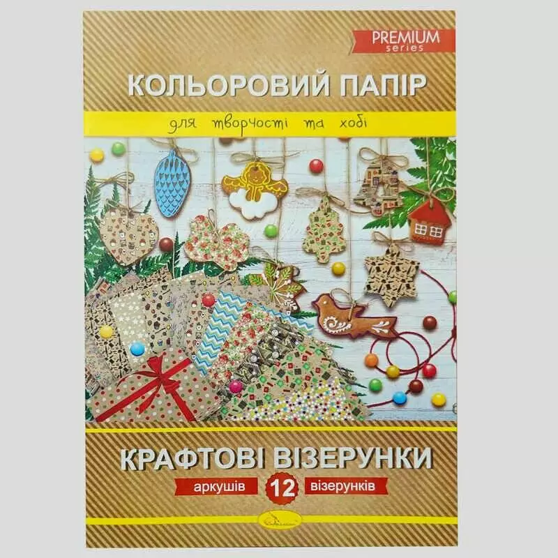 гр Набір кольорового паперу ""Крафт візерунки"" Преміум А4, 12 аркушів КПК-А4-12