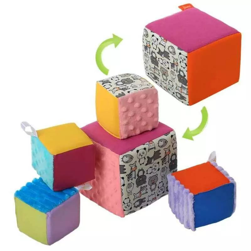 гр Набір м'яких кубиків дизайн 4 ""Звірятка"" 2050036113 (1) “Homefort” 5 кубиків, 1 великий 15х15см, 4 маленьких 10х10см, з петелькою, в ПВХ пакеті