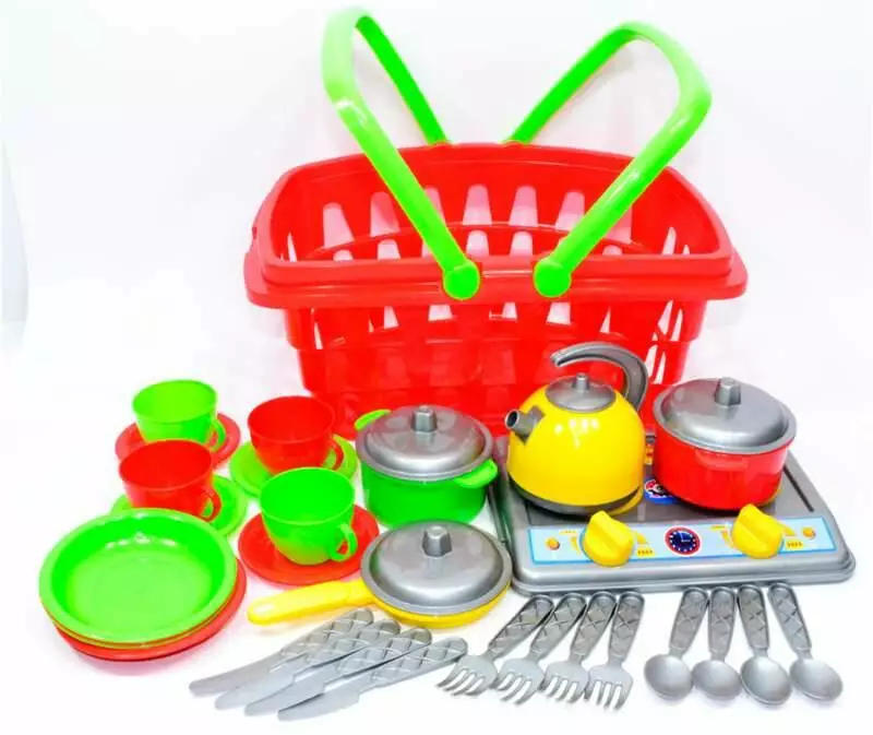 гр Набір посуду ""Галинка 10"" 1172 (4) ""Technok Toys"", набір на 4 персони, плита, каструлі, пательня, чайник, кошик для продуктів, в пакеті