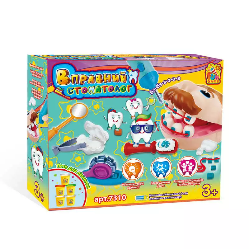 гр Тісто для ліплення ""Вправний стоматолог"" 7310 (12/2) ""4FUN Game Club"", бормашина на батарейках