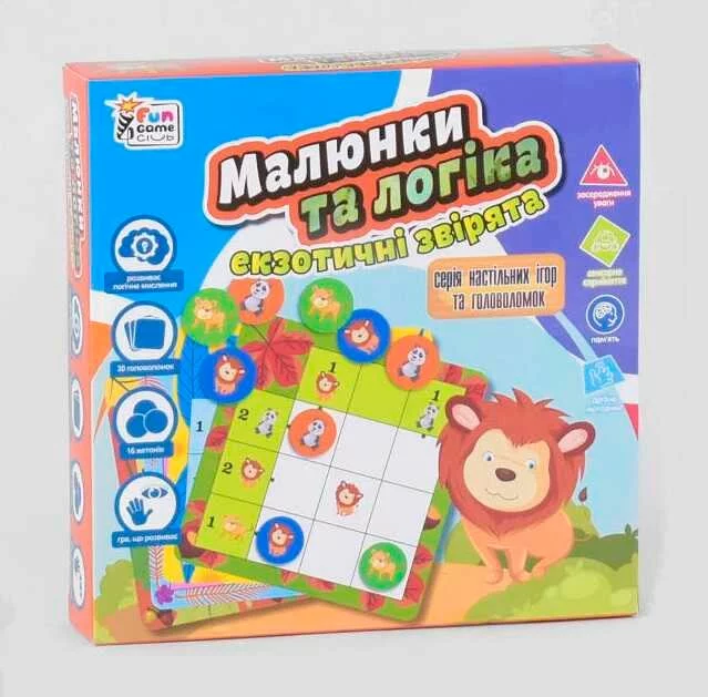 гр Настільна гра ""Малюнки та логіка - Екзотичні звірята"" UKB-B 0029 (12) ""4FUN Game Club"" українською мовою, в коробці