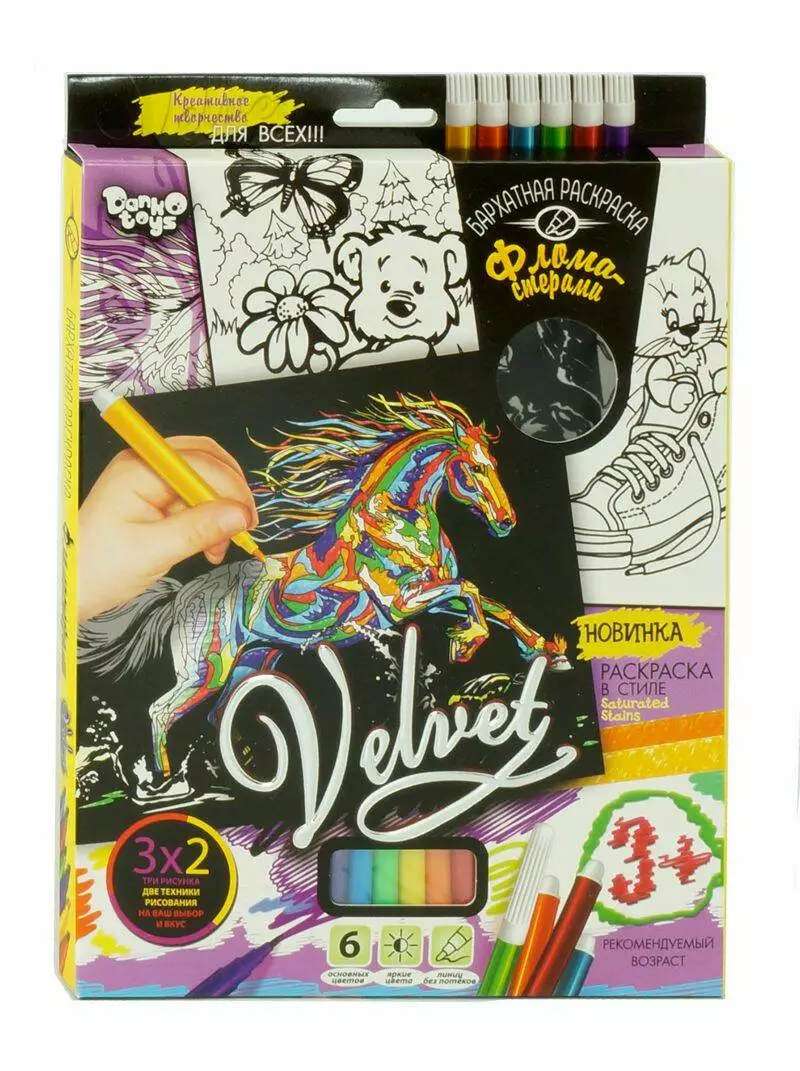 гр Оксамитова розмальовка фломастерами ""VELVET"" VLV-01-01,02,03 ... 10 (20) 8 видів ""Danko Toys"", ОПИС РОС.МОВОЮ