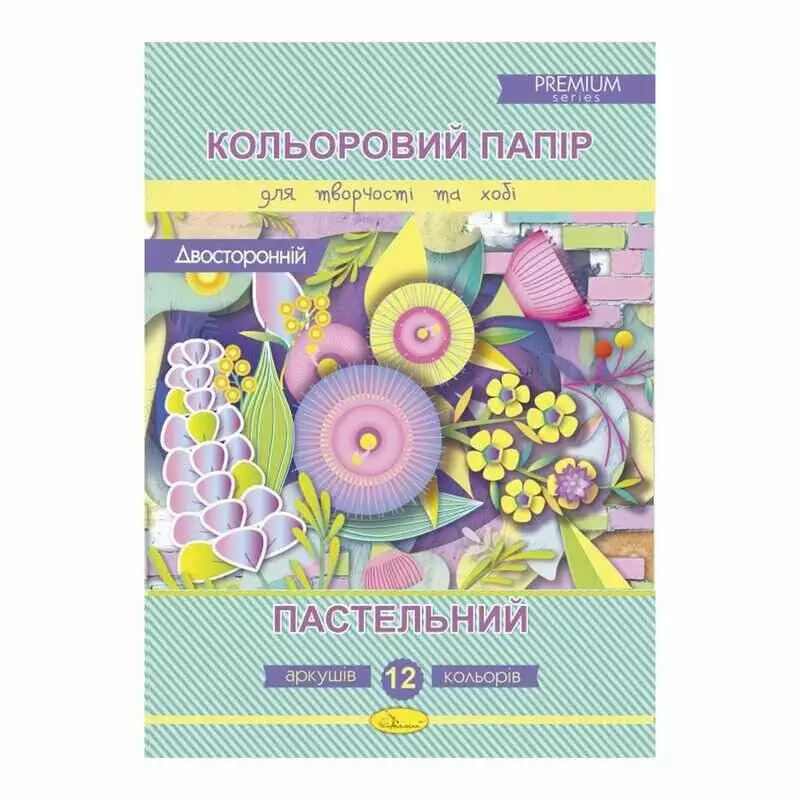 гр Папір кольоровий ""Пастельний"" А4 12 аркушів КППДв-А4-12 / АП-1214 (25) двосторонній