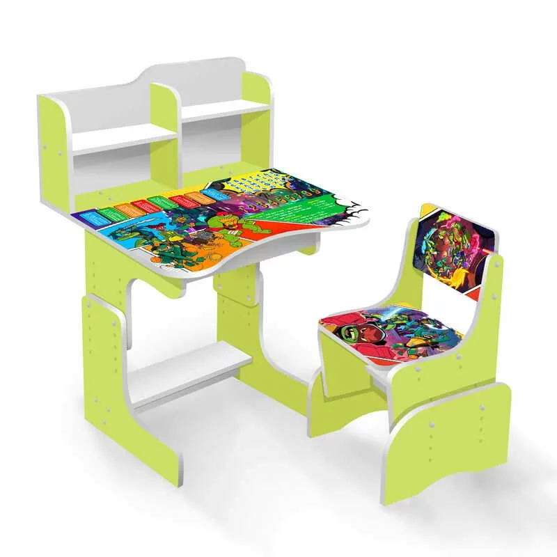 гр Парта шкільна ""Супер Черепашки"" ПШ010 (1) ЛДСП, колір салатовий, 69*45 см, + 1 стілець, з пеналом