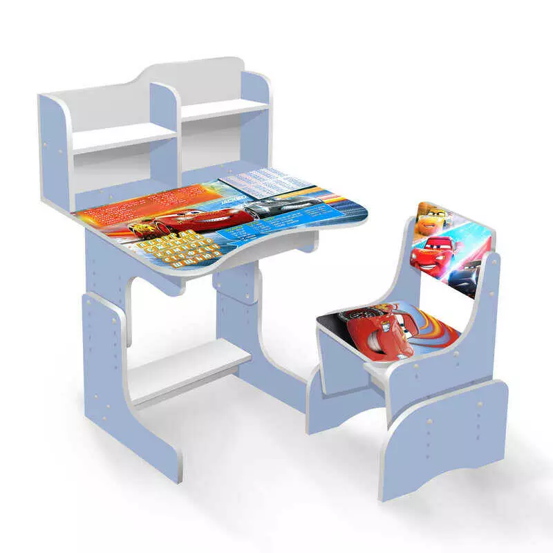 гр Парта шкільна ""Герой гонщик"" ПШ025 (1) ЛДСП, колір блакитний, 69*45 см, + 1 стілець, з пеналом