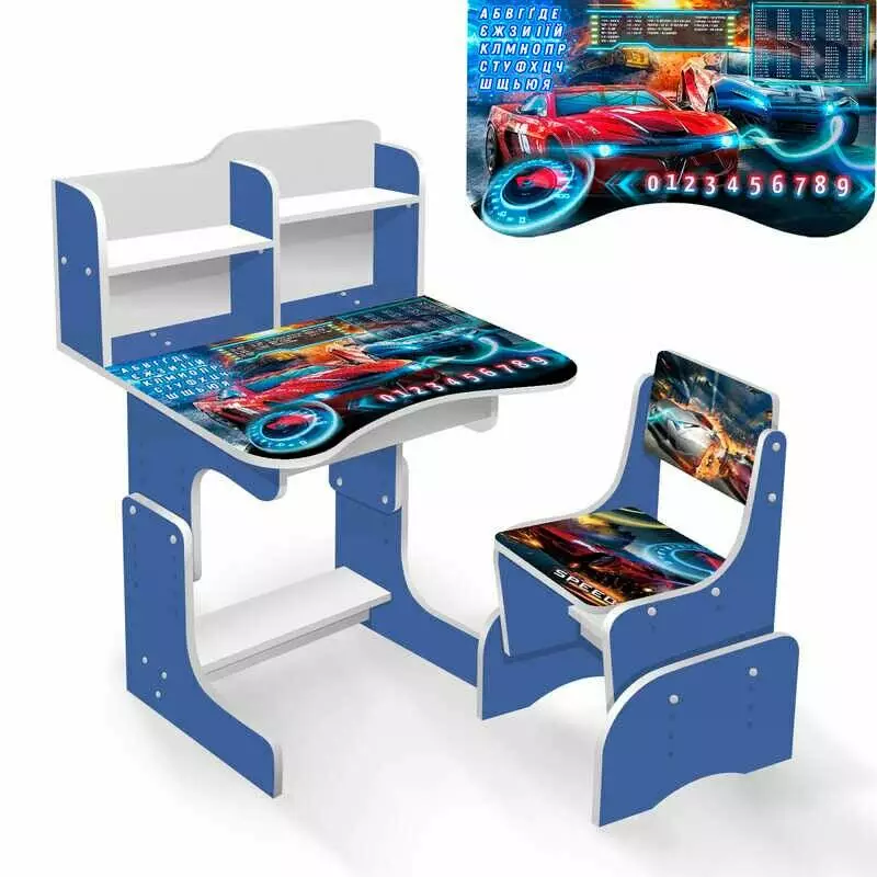 гр Парта шкільна ""Машини"" ЛДСП ПШ040 (1) 69 * 45 см., колір синій, + 1 стілець ""Никопарт""