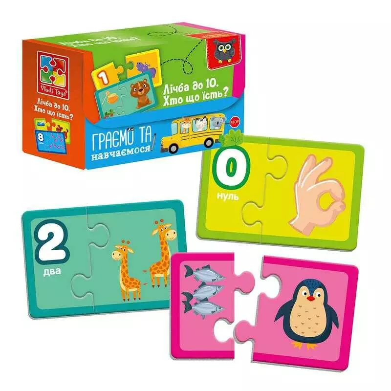гр Пазли ""Знайди пару. Рахуємо до 10. Хто що їсть"" VT5003-01 (54) ""Vladi Toys""