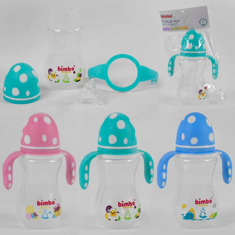 гр Пляшечка для годування 82505 (72) з силіконовою соскою, ""BIMBO"", 330 мл, 3 кольори, пластик, 1шт в пакеті