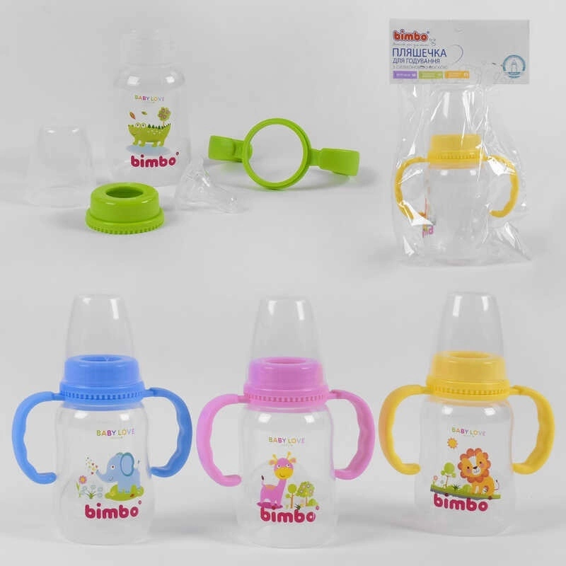 гр Пляшка для годування 10405 (144) з силіконовою соскою, ""BIMBO"", 150 мл, 4 кольори, пластик, 1шт в кульку