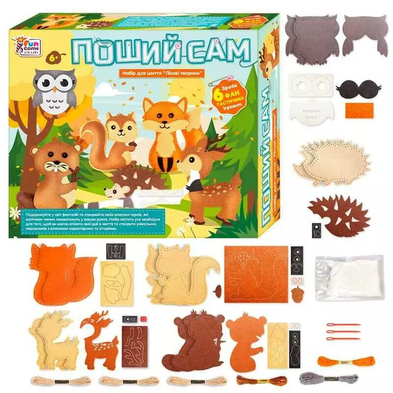 гр Поший сам 91060 (18/2) ""4FUN Game Club"", ""Лісові тварини”, 6 фігурок, шаблони з фетру, нитки, пластикові голки, наповнювач, в коробці