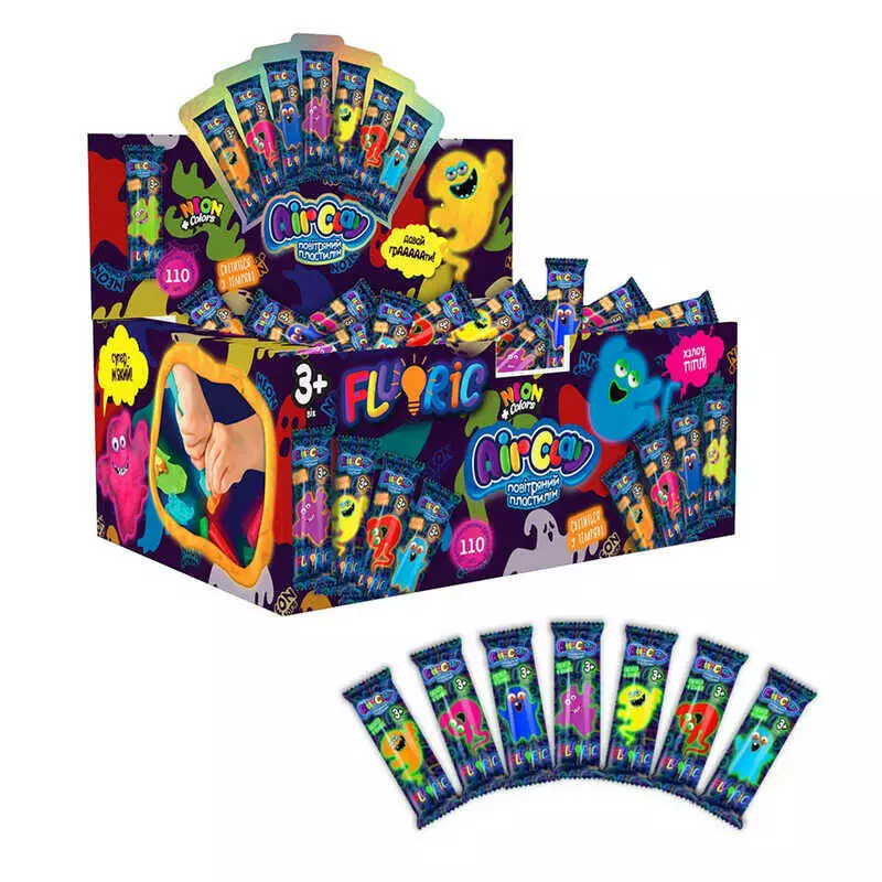 гр Повітряний пластилін ""Air clay FLUORIC"" ARCL-F-01-01U (1) ЦІНА ЗА 110 ШТУК В БЛОЦІ, в брикетах ""Danko Toys""