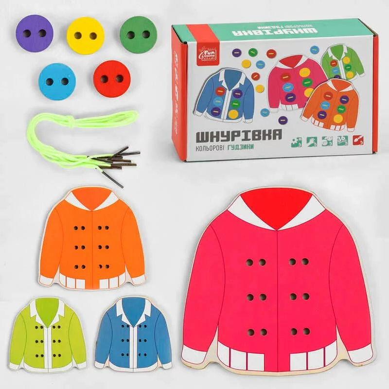 гр Шнурівка дерев'яна 89563 (40) ""4FUN Game Club Wood"", ""Верхній одяг"", 4 ігрові панелі, в коробці
