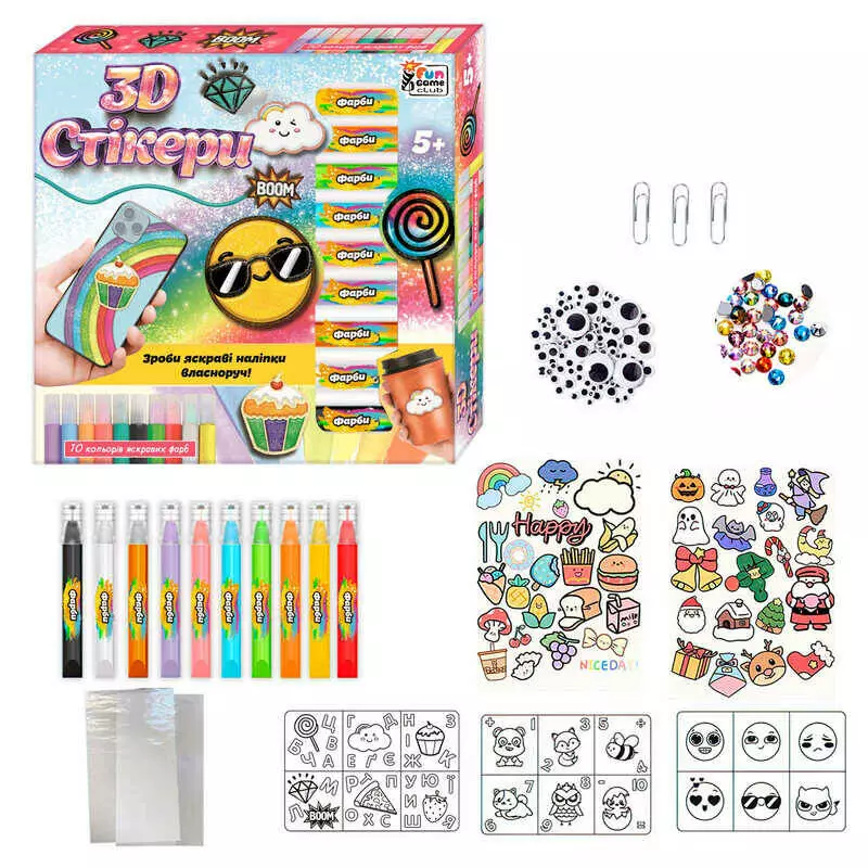 гр Стікери 3D 83285 (24/2) ""4FUN Game Club"", 10 фарб, стрази, шаблони, в коробці