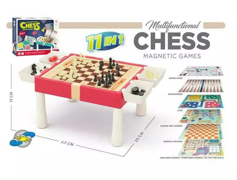 Гра ""11в1"" 9801 A (36) 11 в 1, столик, шахи, шашки, нарди, гомоку, змійки та драбинки, лудо, ігрові елементи, в коробці