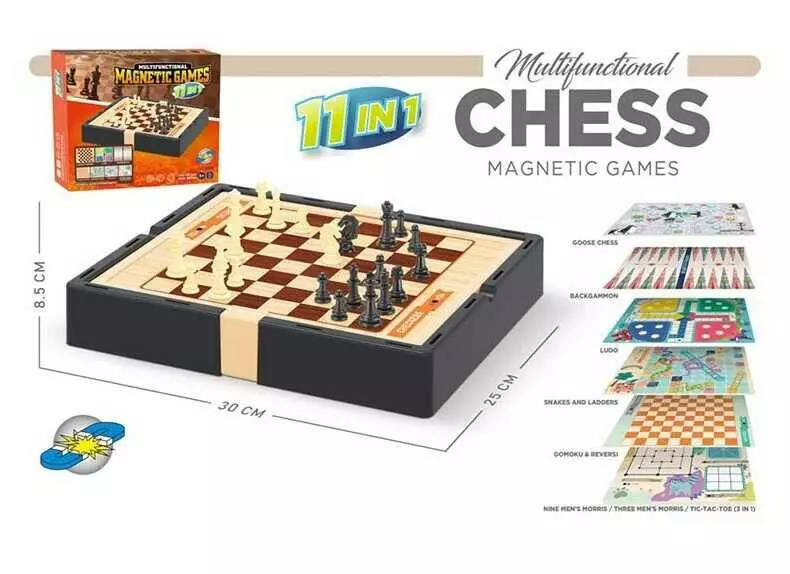 Гра ""11в1"" 9803 (36) 11 в 1, шахи, шашки, нарди, гомоку, змійки та драбинки, лудо, ігрові елементи, в коробці