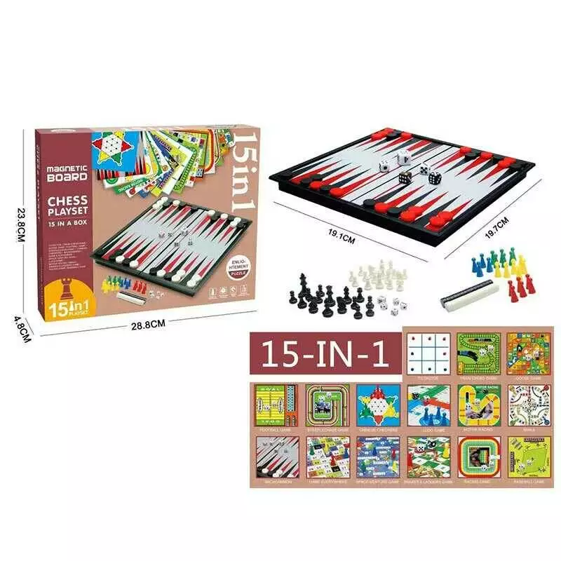 Гра 2014 BC (36/2) 15 в 1, ігрові поля, ігрові елементи, хрестики-нулики, шахи, шашки, нарди, космічна гра, лудо, автоперегони, manji, змії та драбини, бейсбол, в коробці