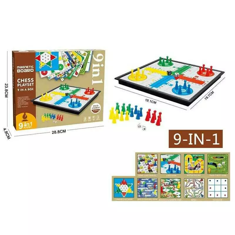 Гра 2015 H (36/2) 9 в 1, ігрові поля, ігрові елементи, хрестики-нулики, шашки, космічна гра, лудо, автоперегони, manji, змії та драбини, в коробці