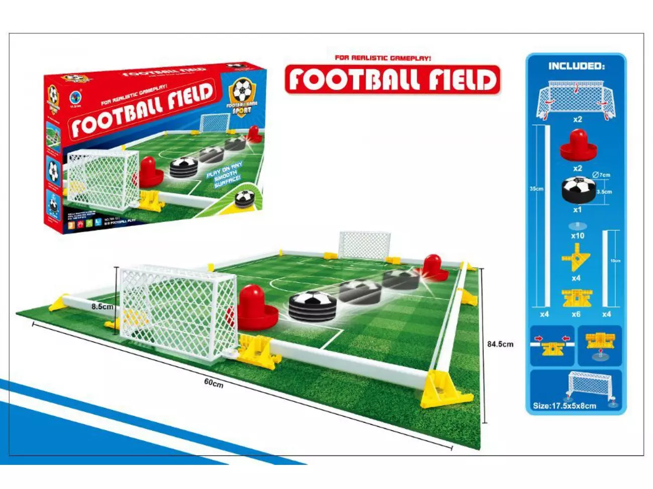 Розмір коробки 36,5х23х6 см. Ворота 17.5х5х8 см. М'яч: діаметр 7см, висота 3,5см. Ігрове поле 84,5х60х8,5 см Оригінальна настільна гра Аеро Футбол. Аером'яч працює від 2х батарей ААА. Збирається на будь-якій гладкій поверхні. Кріпиться за допомогою присосок. Ігровий килимок у комплект не входить.
