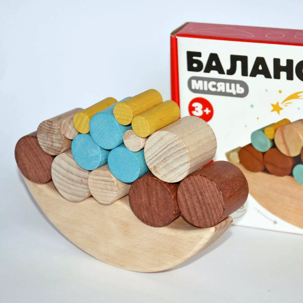 Дерев'яний балансир "Місяць" - захоплююча гра на точність та координацію рухів. Мета гри - знайте ідеальний баланс основи, для цього потрібно викласти всі циліндри на основу-місяць так, щоб циліндри не падали, а місяць не перехилявся. Дитині знадобиться терпіння, витримка, наполегливість. Гра чудово тренує не лише велику моторику рук і концентрацію уваги, а й акуратність та бажання отримувати результат. Деталями набору можна грати не лише як балансиром - не менш цікаво будувати з циліндрів якомога вищі вежі, з'єднувати їх з іншими кубиками, а також сортувати за діаметром і кольором. Іграшки з дерева приємні на дотик, легкі і стійкі до механічних пошкоджень. Гра з балансиром розвиває: - моторику рук, контроль над пальцями - точність рухів, акуратність - окомір - вміння передбачати результат своїх дій - уяву Розмір основи-місяця 18х6 см, 15 циліндрів діаметром від 1,5 до 3,5 см Склад: натуральне дерево, сертифіковані лакофарбові матеріали на водній основі, картонна упаковка.