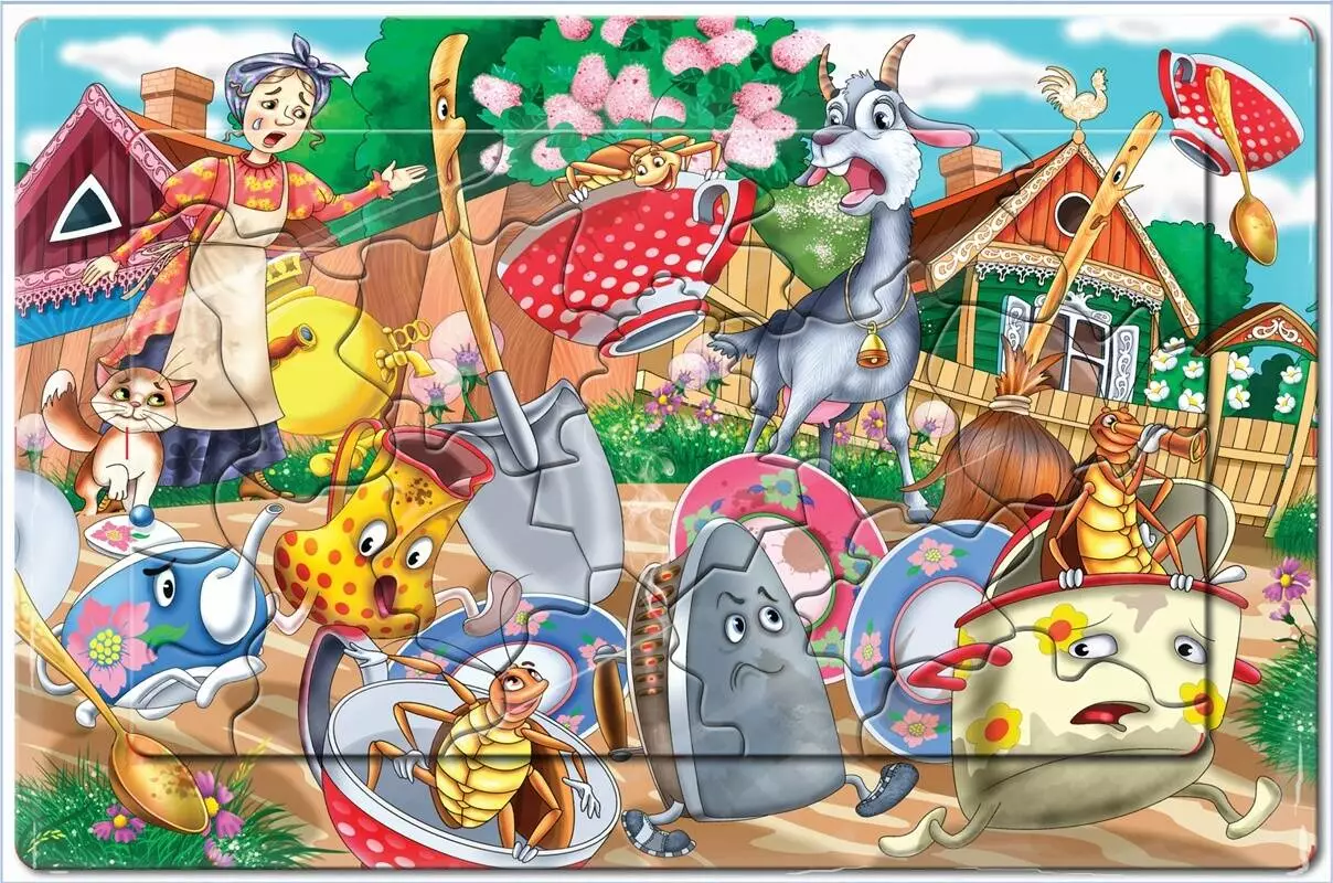 Гра-головоломка за казкою чудового дитячого письменника Корнія Чуковського. Фігурний пазл в рамці. 18 елементів + рамка с основою, з товстого картону 2 + 2 мм. Гра спрямована на розвиток інтелекту дитини. Яскраві і барвисті картинки не залишать байдужими вашого непосиду. В процесі гри малюк навчиться логічно мислити, розвине просторову уяву, пам'ять, сприйняття і наочно-образне мислення, поліпшить координацію рухів і дрібну моторику рук і пальчиків.